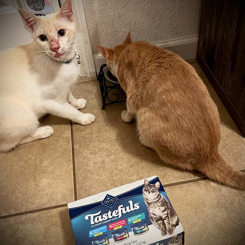Blue Buffalo Tastefuls Flaked Wet Cat Food. One is a year and a half the other is about 7 months. Ive googled safe cat foods but Im honestly scared some of those reviews are paid for.